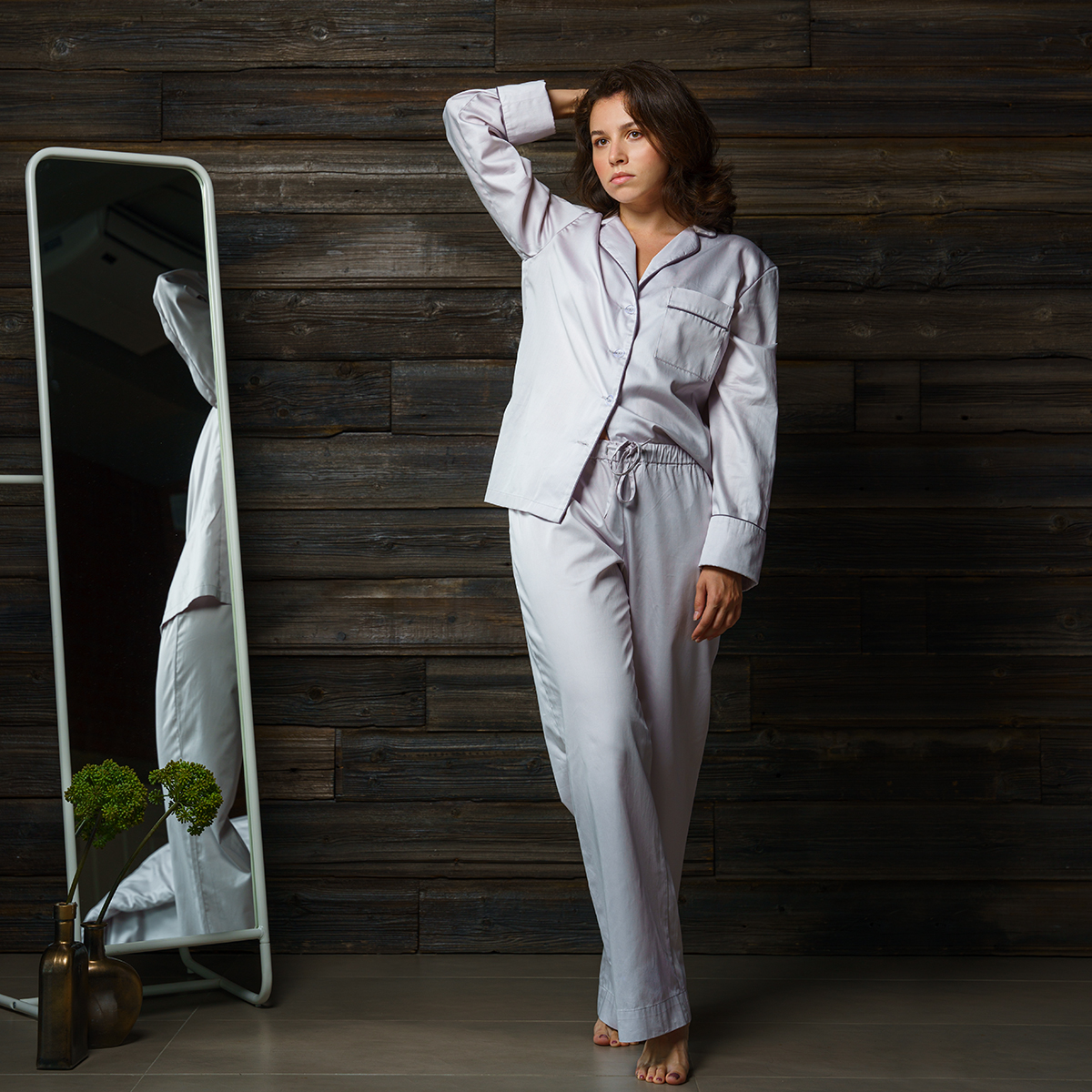 Пижама выполнена из 100% длинноволокнистого египетского хлопка высшего сорта, очень мягкого и приятного на ощупь - доставит удовольствие от каждого прикосновения