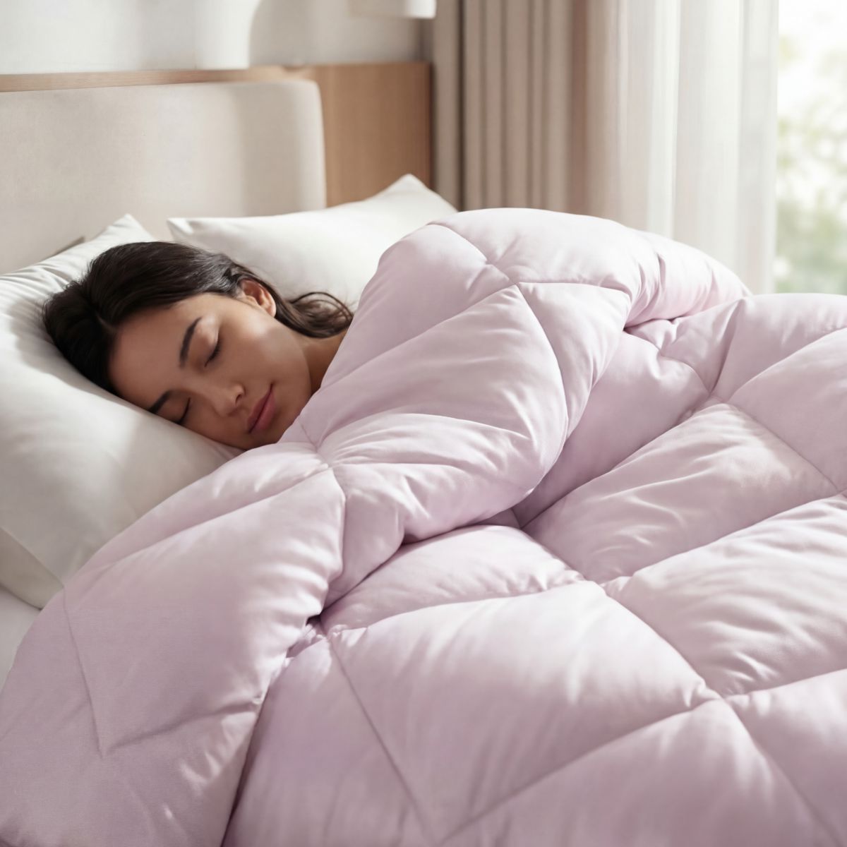 Благодаря объемному наполнителю одеяло обволакивает приятной тяжестью, создавая эффект антистресс-объятий, тем самым помогая полноценно расслабиться и быстрее заснуть.