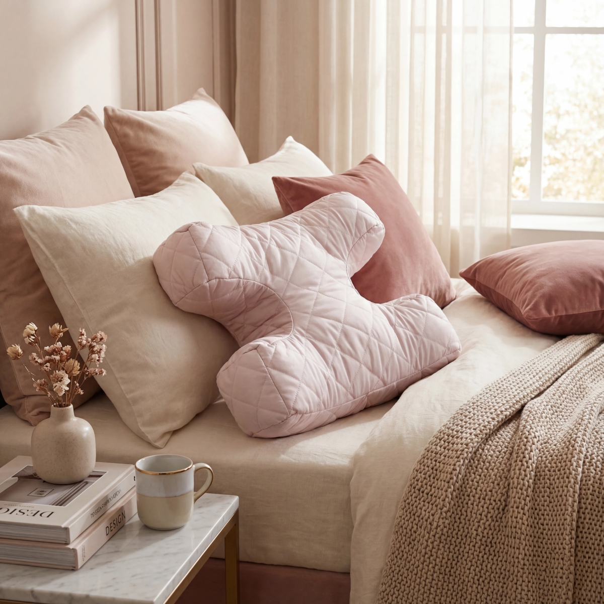 Уникальная форма с четырьмя «ножками» - это продуманная конструкция, которая помогает сохранить красоту и молодость: снижается давление на кожу, голова поддерживается в анатомически правильном положении, уменьшаются ночные заломы на лице.
