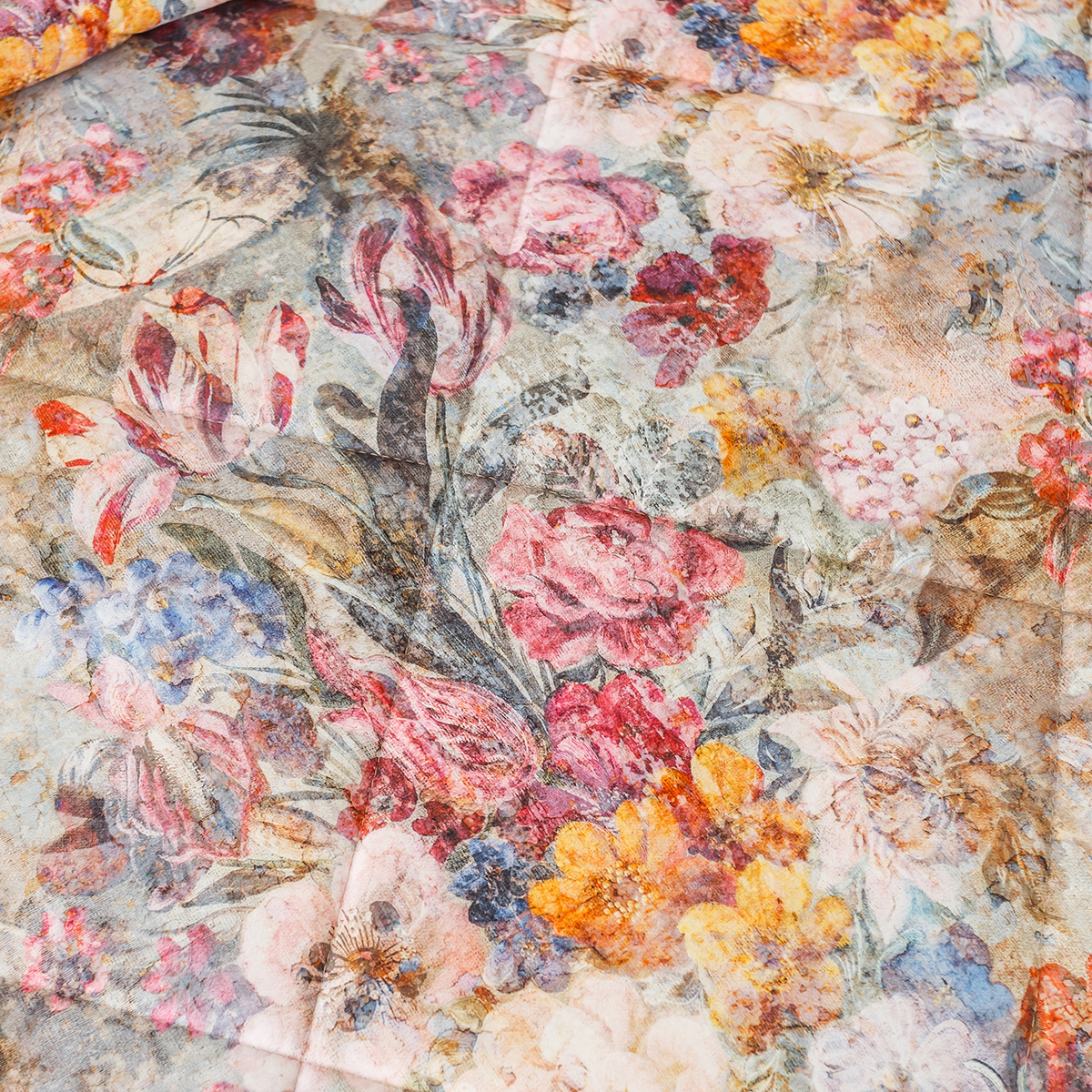 «Беатриче» - роскошный цветочный узор в винтажном стиле создает атмосферу уюта и тепла. Богатая палитра, наполненная множеством оттенков, переносит в цветущий сад, где каждый цветок раскрывает свою уникальную красоту. Текстура и насыщенность рисунка добавляют глубины и уюта, а зеленые акценты создают гармоничный контраст, подчеркивая натуральные оттенки природы.