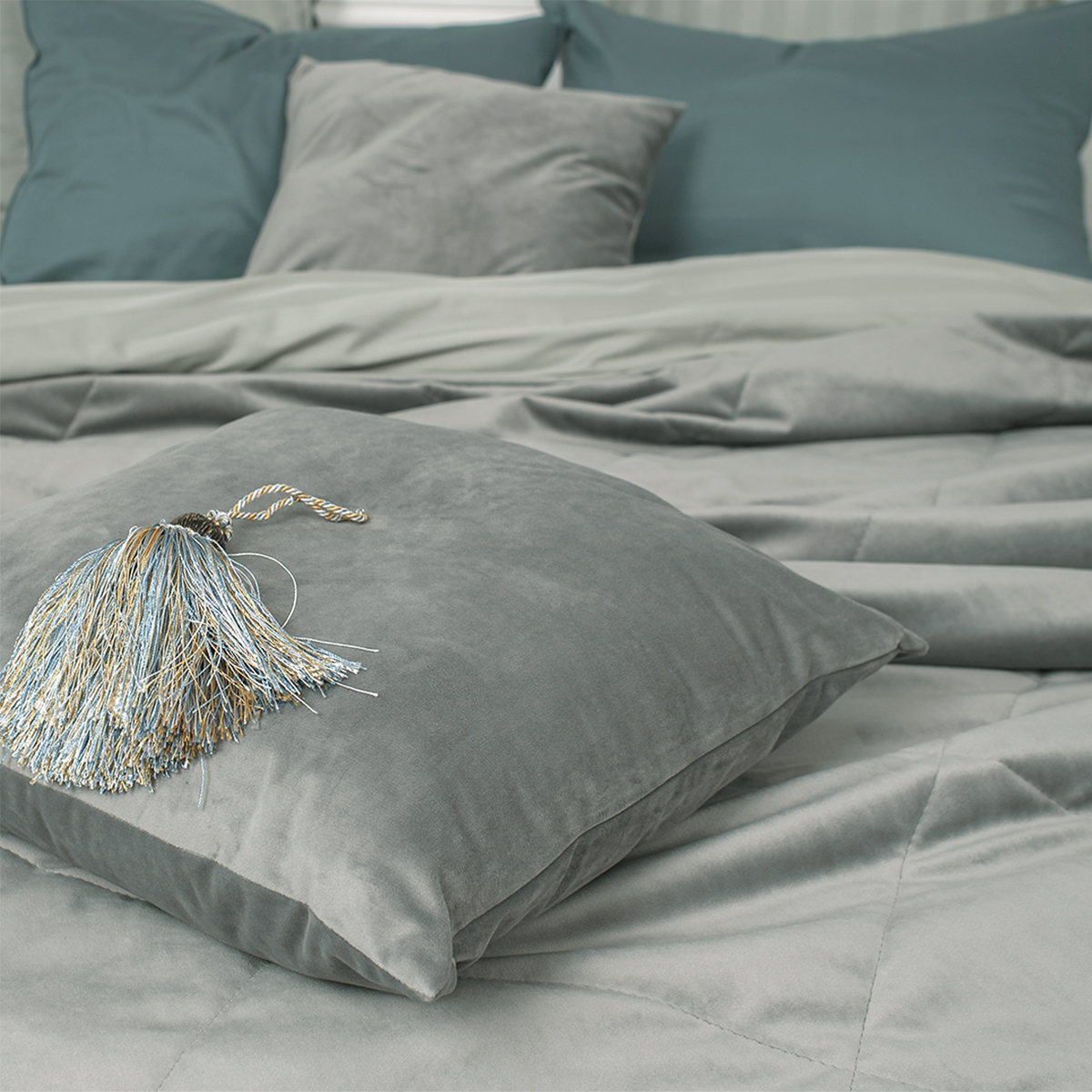 Состав: бархат 100% пэ, наполнитель - полиэфирное волокно. Стежка в виде ромбов.