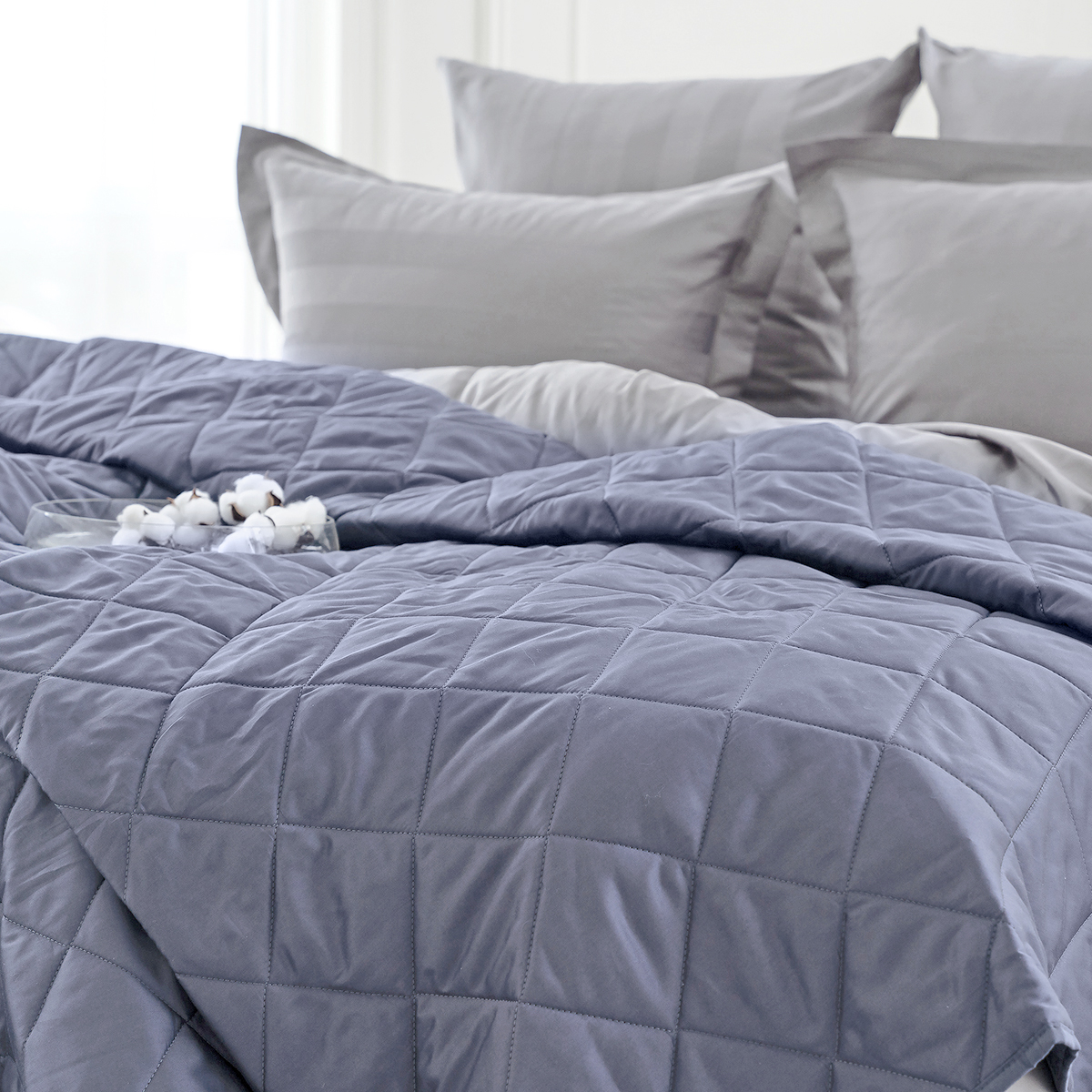 ОСОБЕННОСТЬ модели: хлопковое покрывало на кровать с закругленным уголком, практичной окантовкой по периметру изделия и стильной стежкой в виде ромбов. Верхняя и нижняя часть покрывала выполнены из высококачественного египетского хлопка – безопасного, натурального и комфортного материала.