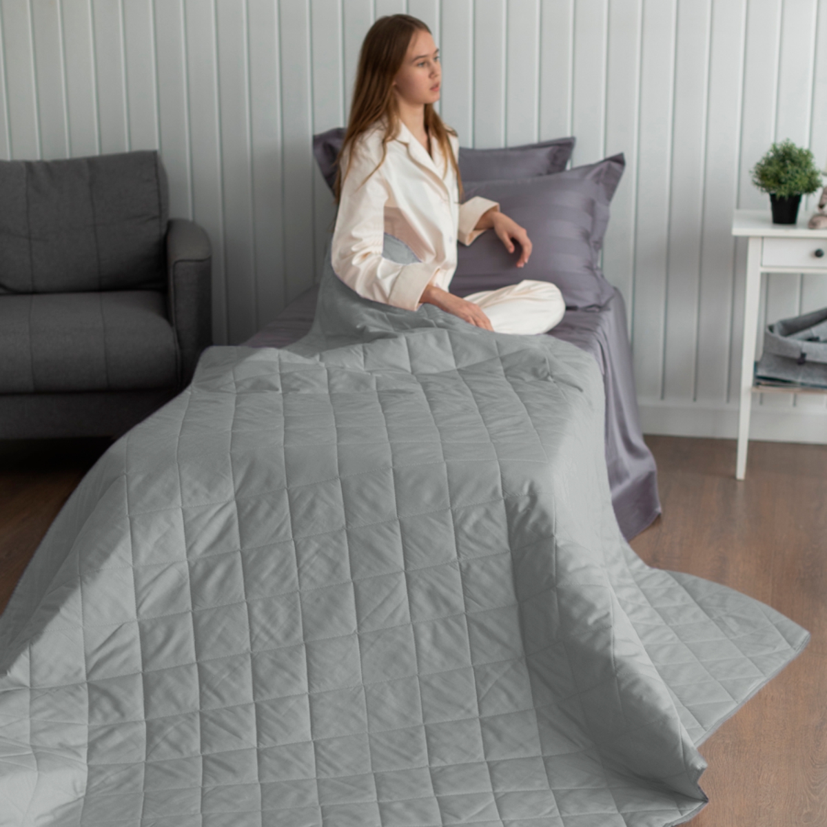 Нежное двухстороннее стеганое покрывало из 100% хлопка (сатин, плотность 205ТС) с гипоаллергенным 3D-наполнителем (100 г/м²) создано для тех, кто ценит: