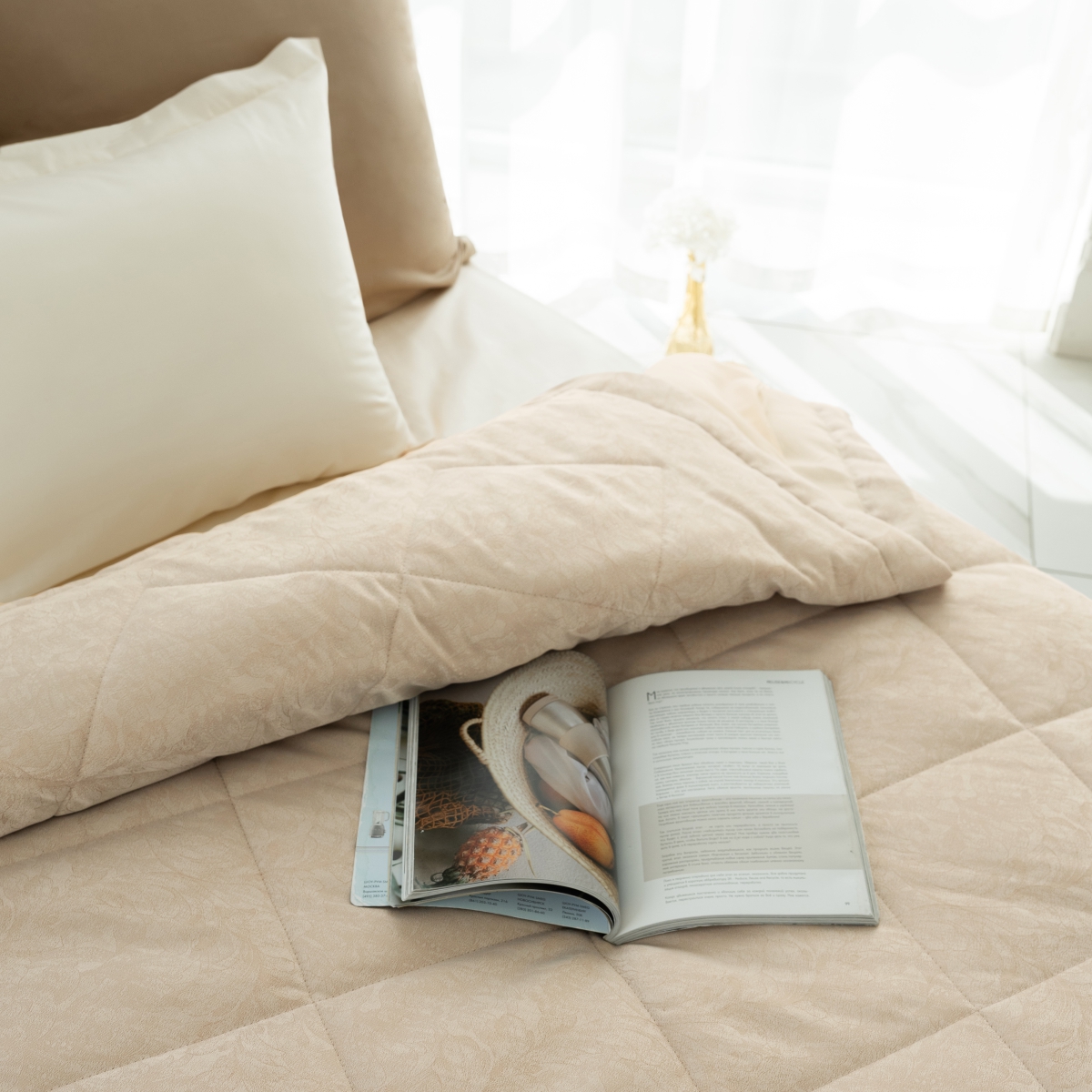 В комплект входит: покрывало стеганое 220х240 см, наволочек нет.