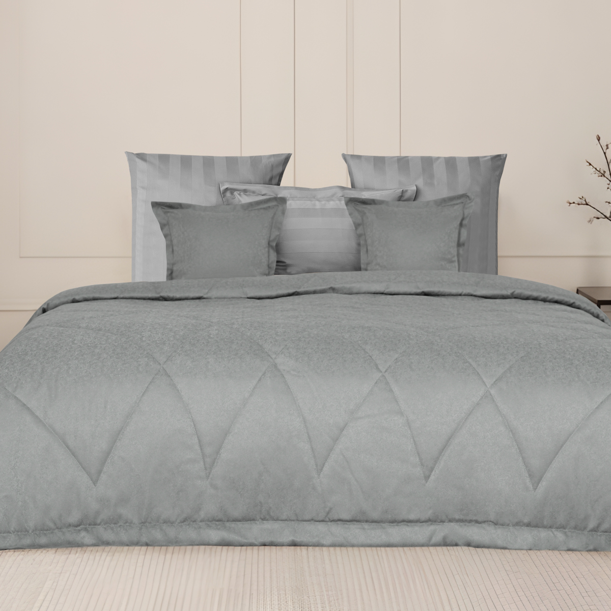 - Деликатная рельефность жаккарда создает изысканную игру света и тени, оживляя поверхность и наполняя её тактильным удовольствием.