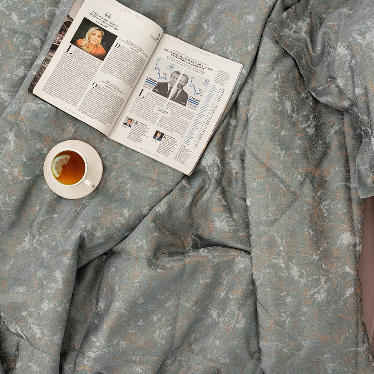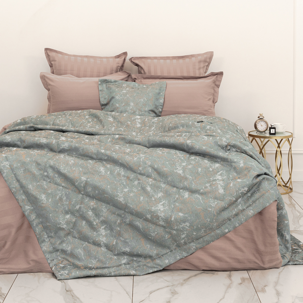 Покрывало Glori - современный стильный дизайн, с ноткой индивидуальности и завораживающей глубины. Она придаст пространству спальни особый шарм. Смотрится изысканно и элегантно, сочетает в себе изящный жаккардовый блеск, благородные цвета и фактуру.