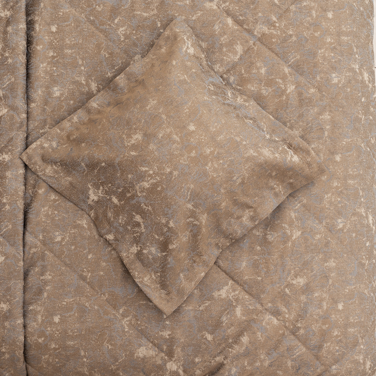 В комплект входит: стеганное покрывало на подкладе размер 240*260 см и 2 декоративные наволочки 45х45 см на молнии. Наволочки с четырех сторон декорированы ушками шириной 4 см.
