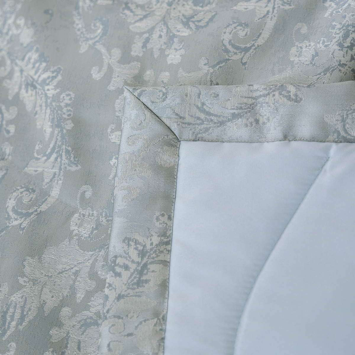 В комплект входит: стеганое покрывало на подкладе размер 240х260 см и 2 декоративные наволочки 45х45 см на молнии. Наволочки с четырех сторон декорированы ушками шириной 4 см.
