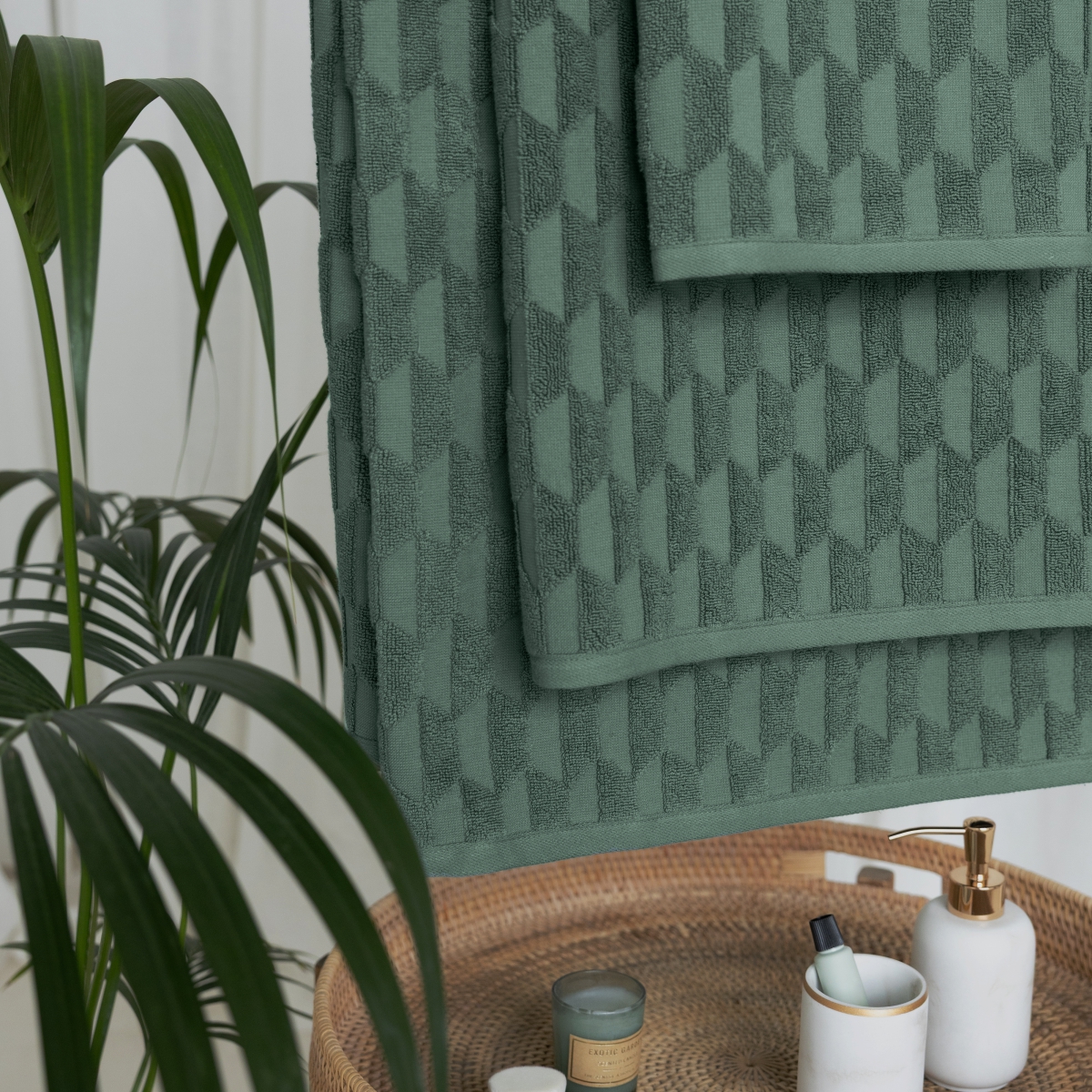 Махровые полотенца Diamond - это не просто полотенца, это воплощение элегантности и комфорта. Вдохновленные сиянием ограненных бриллиантов, мы создали коллекцию с узором в виде геометричной выстрижки, которая напоминает алмазную огранку, создает игру света и тени, превращая обычное полотенце в предмет интерьерного искусства.