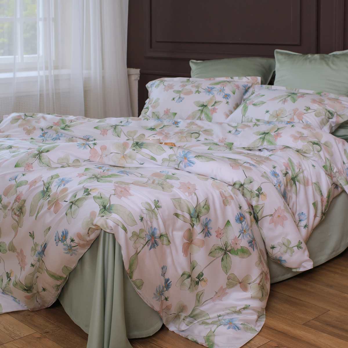 Tencel относится к разряду биологически чистого и натурального волокна. Очень приятен на ощупь и дарит ощущение невероятного комфорта. Поверхность ткани обладает легким мягким блеском, присущим натуральному шелку. Подходит для самой чувствительной кожи.