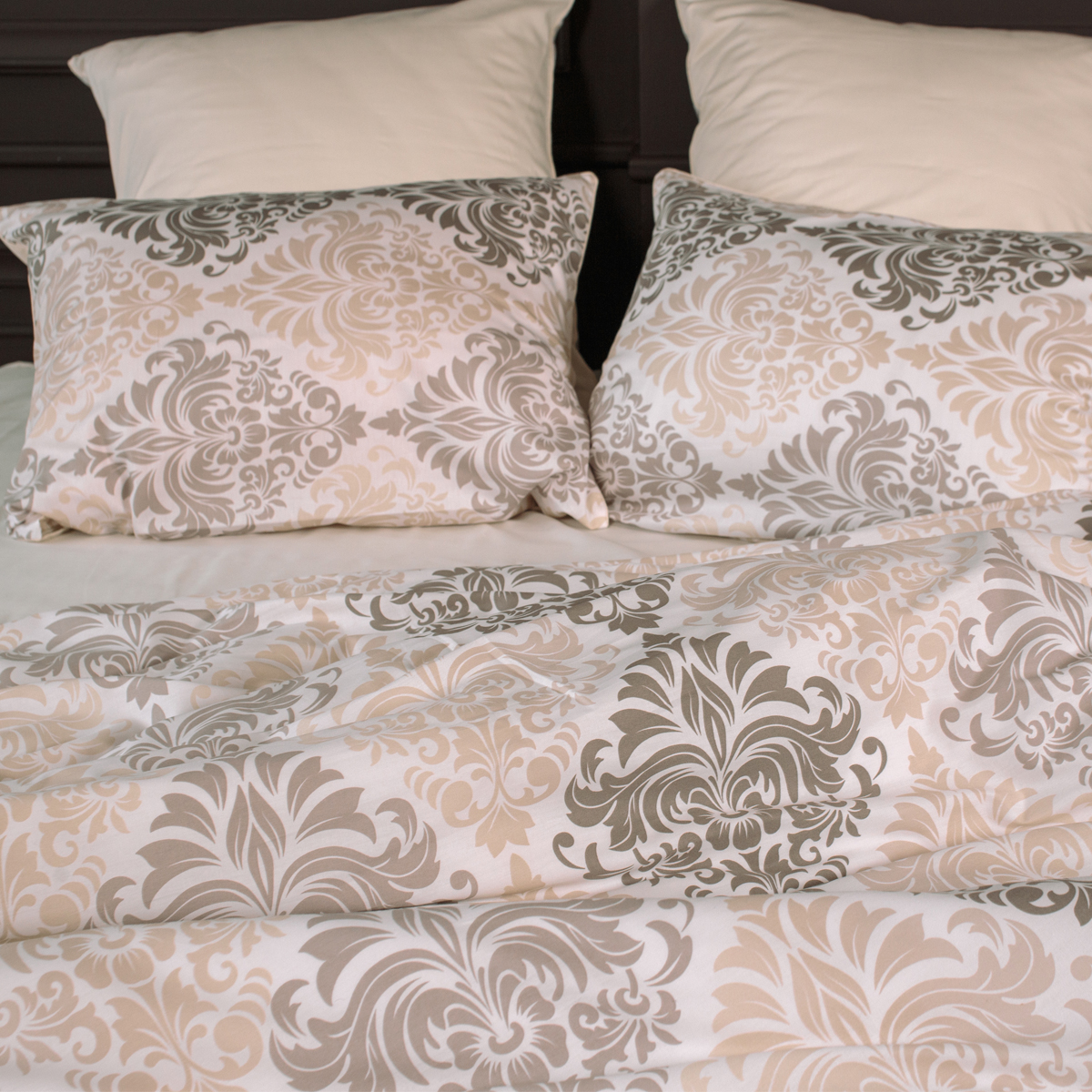 - Наволочки двухсторонние: лицевая сторона– классический принт, оборотная – однотонная. Декоративный кант по трем сторонам наволочки.