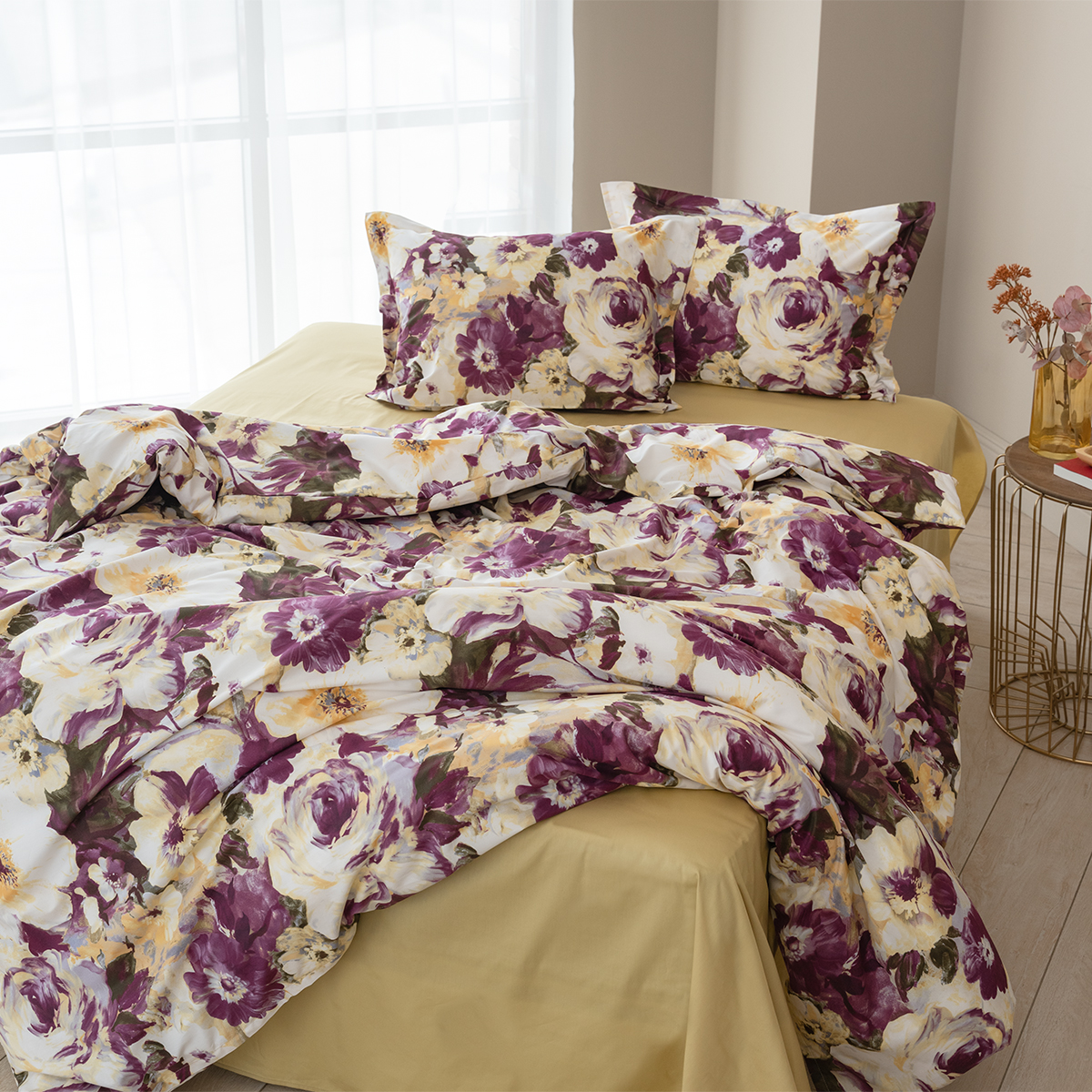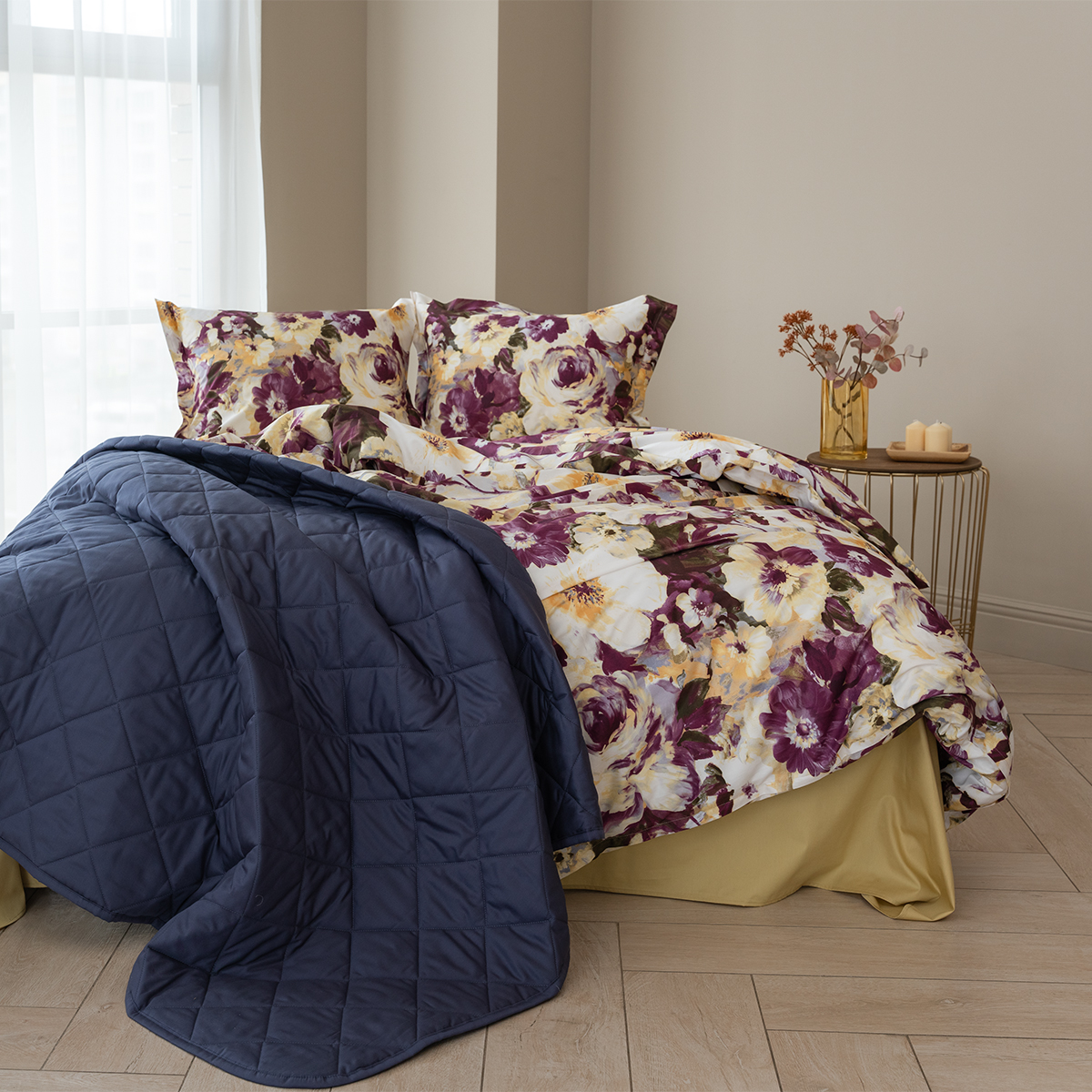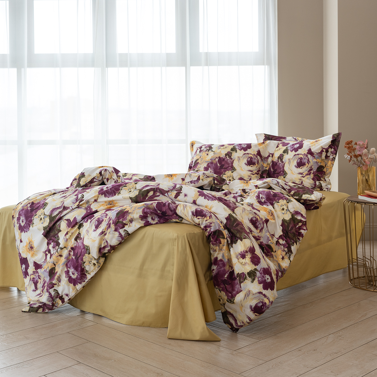 Насыщенный цветочный дизайн, выполненный в акварельной технике, излучает заряд энергии и отличного настроения. Цвет бургундского вина в сочетании с горчичным – яркое послевкусие насыщенного дня. Эксклюзивные печатные принты созданы в собственной дизайн студии La Prima.
