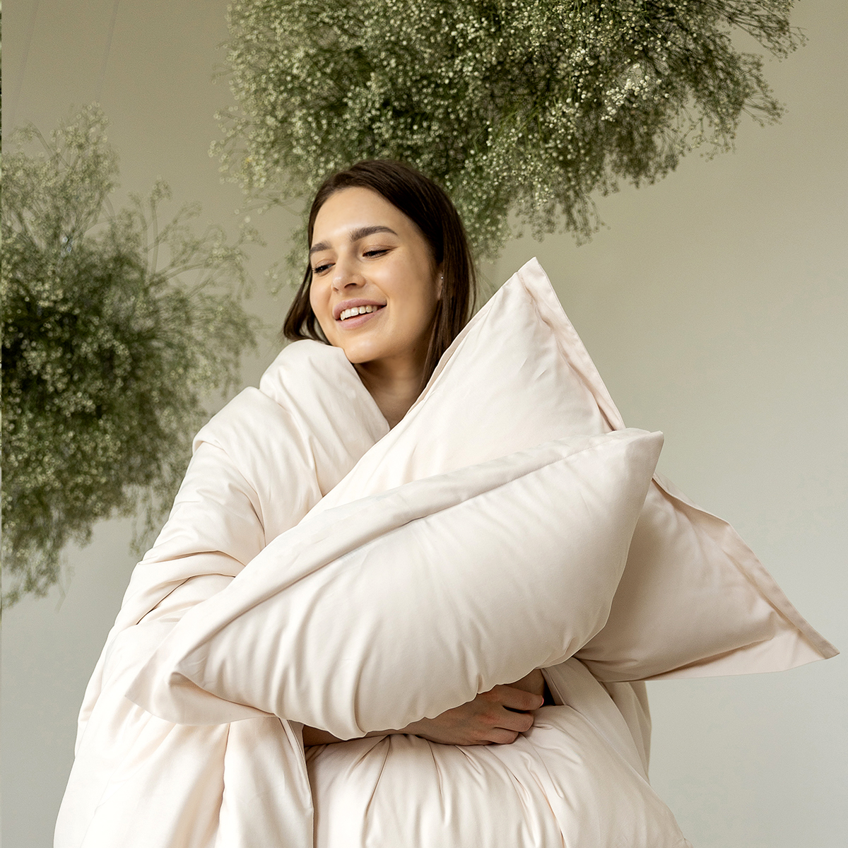 Текстиль из натуральной хлопковой ткани пропускает воздух, поддерживает комфортную температуру тела, когда вы спите. Гипоаллергенно.