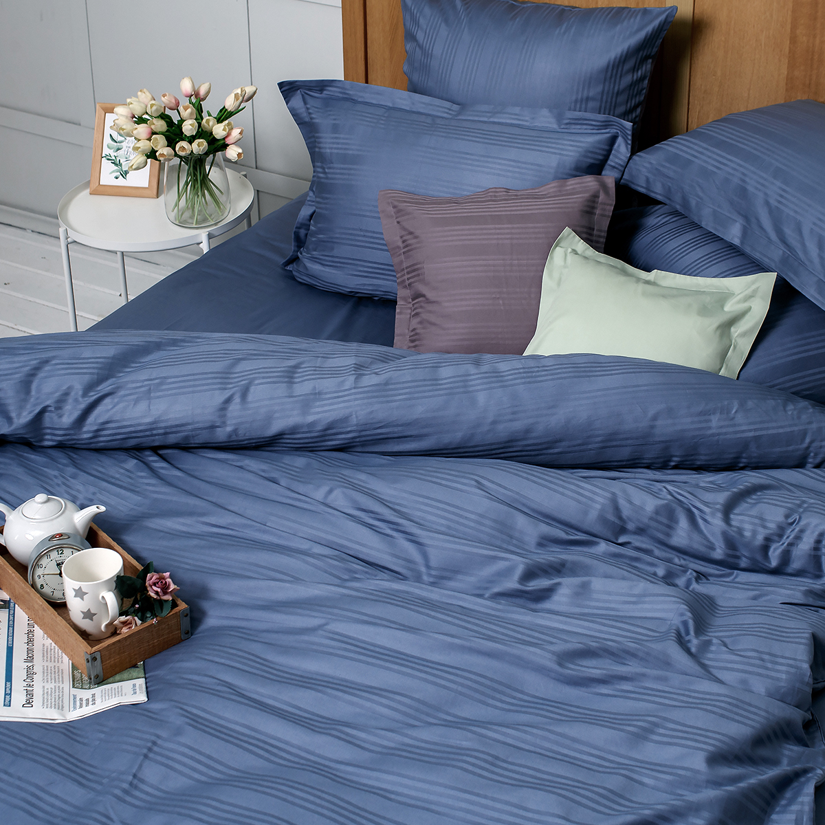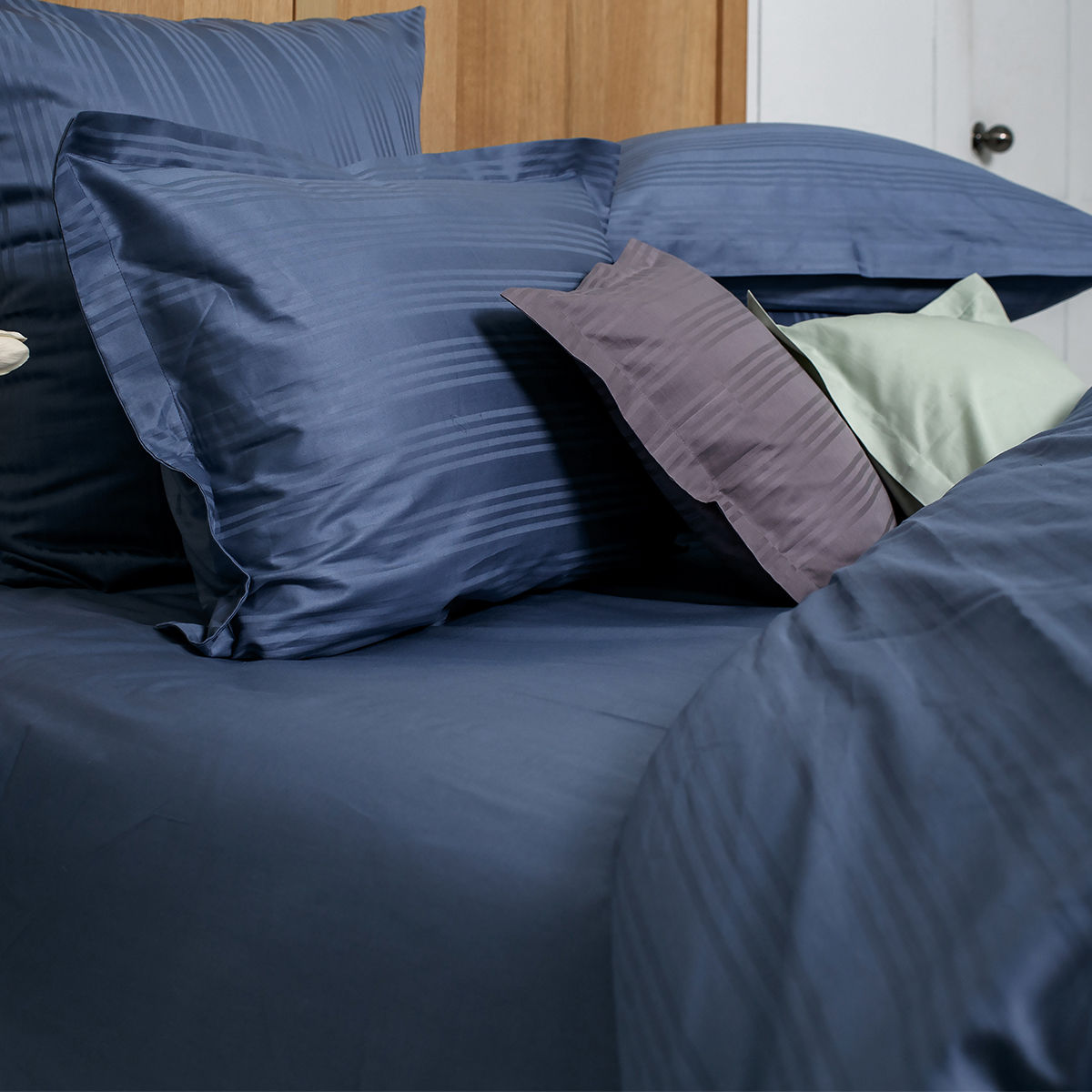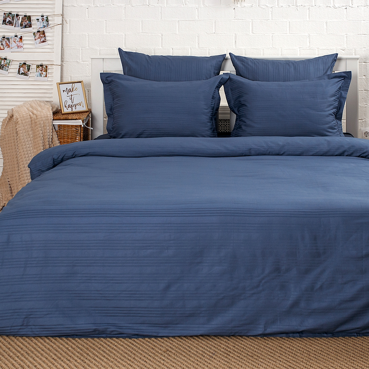 Однотонный стильный комплект постельного белья произведен из ткани страйп-сатин – 100% хлопок с жаккардовым рисунком в виде полос 4х1. Благодаря специальному плетению - это гладкая, нежная и приятная на ощупь ткань. Пропускает воздух, поддерживает комфортную температуру тела, когда вы спите.