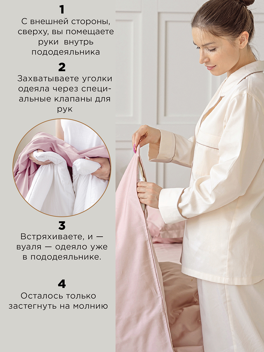 ПОДОДЕЯЛЬНИК С КЛАПАНАМИ ДЛЯ РУК — это то, с чем вы перестанете тяжело вздыхать при вдевании одеяла. Молния во всю ширину пододеяльника в цвет комплекта. Как это работает: