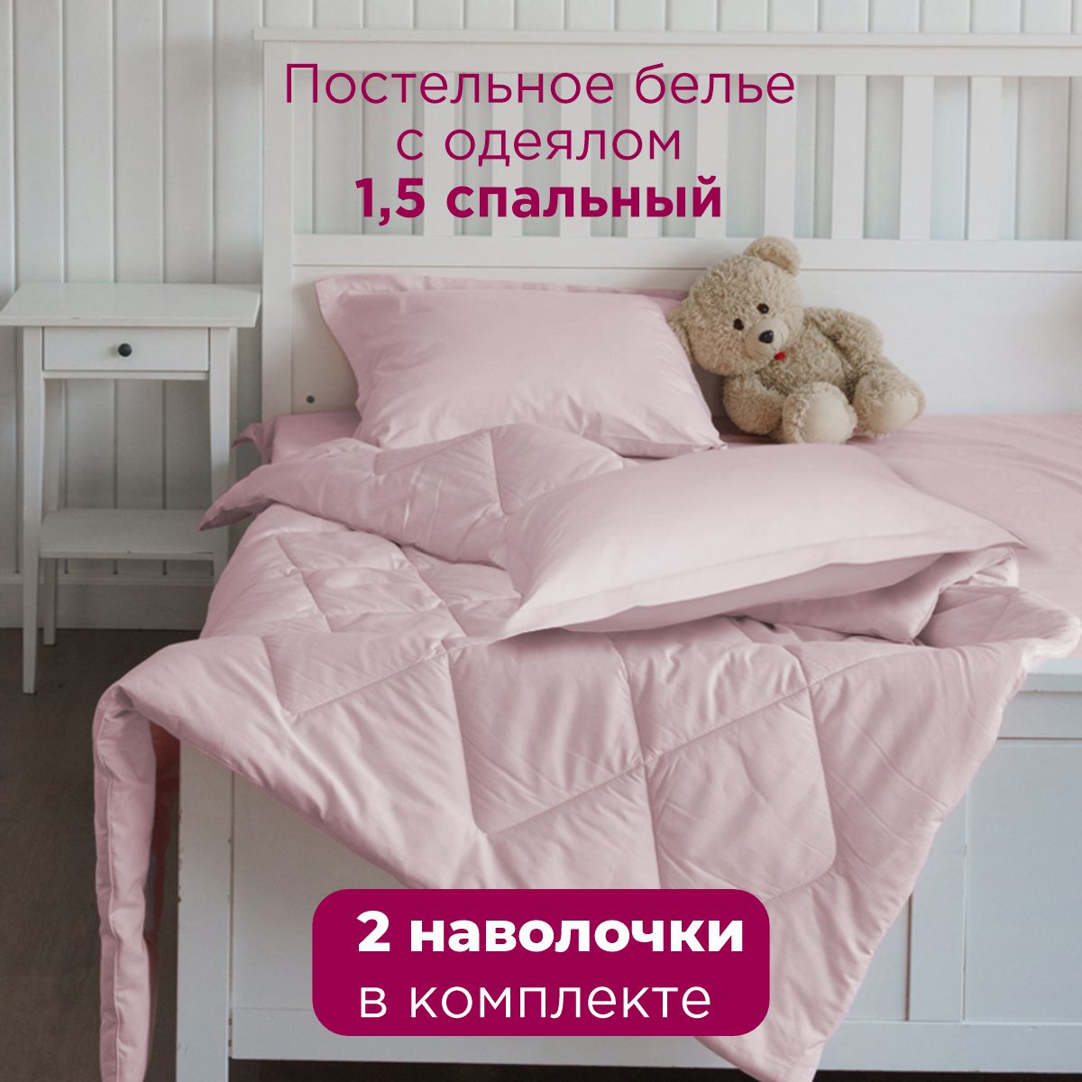 ПОСТЕЛЬНОЕ БЕЛЬЁ САТИН С ОДЕЯЛОМ 2 НАВОЛОЧКИ PINK