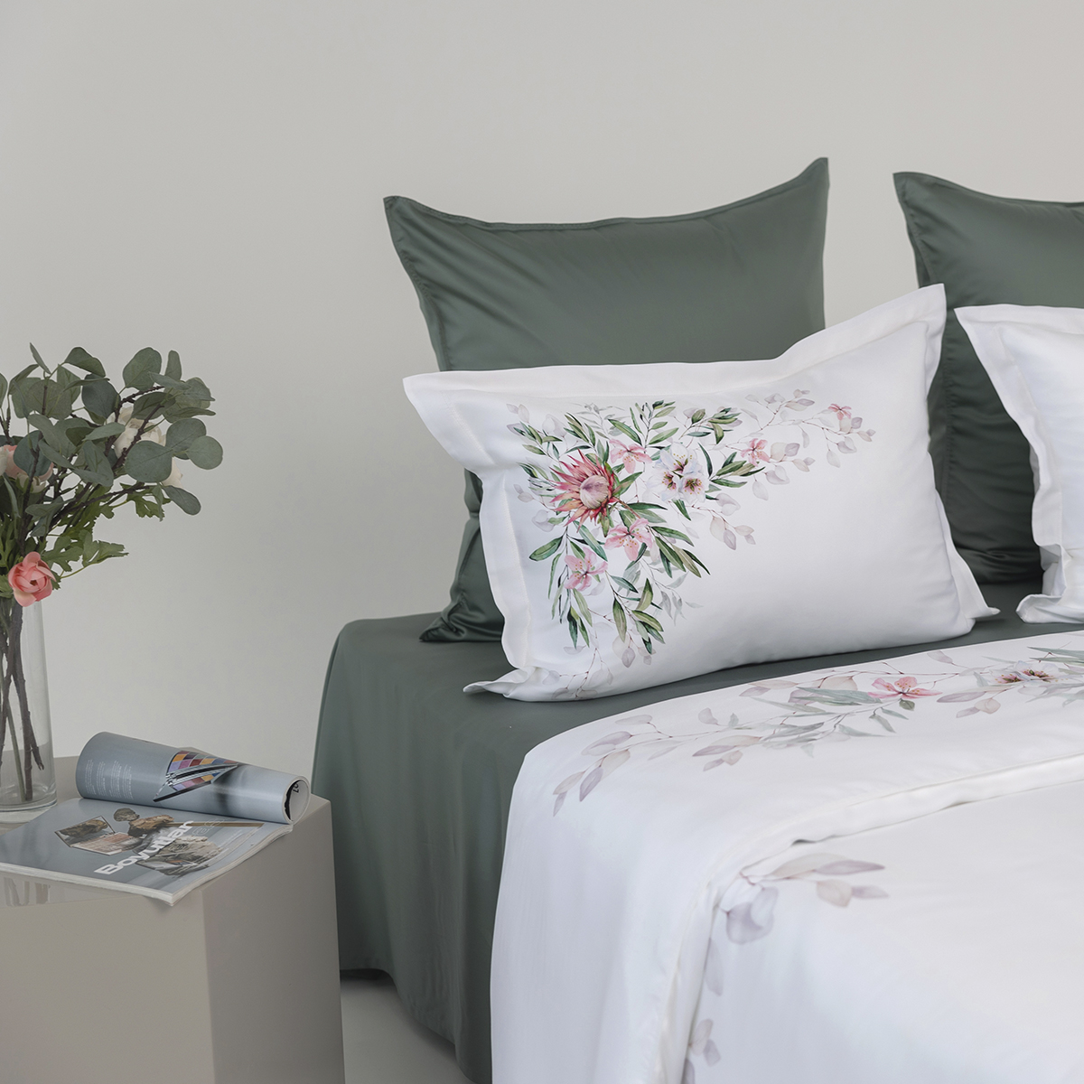 Комплект постельного белья произведен из 100% эвкалиптового волокна Tencel, которое ученые называют инновационным материалом нового поколения.
