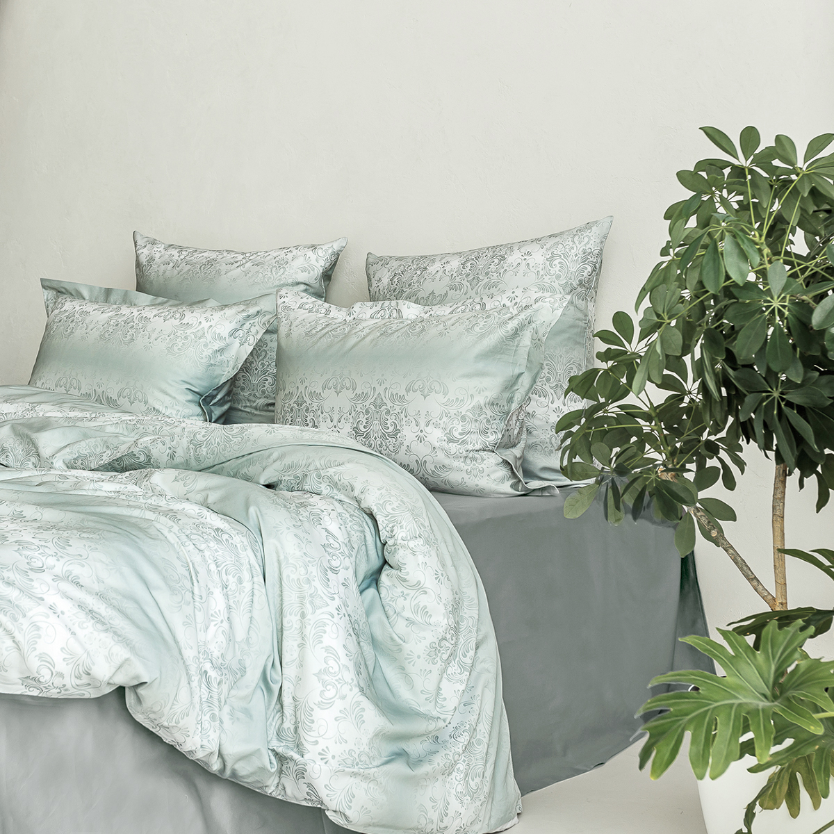 В ткани мако-сатин, из которой произведена коллекция, используется более тонкая 60-я нить. Плотность ткани 300 ТС. За счет специальной скрутки нити, ткань получается очень мягкая и приятная на ощупь.