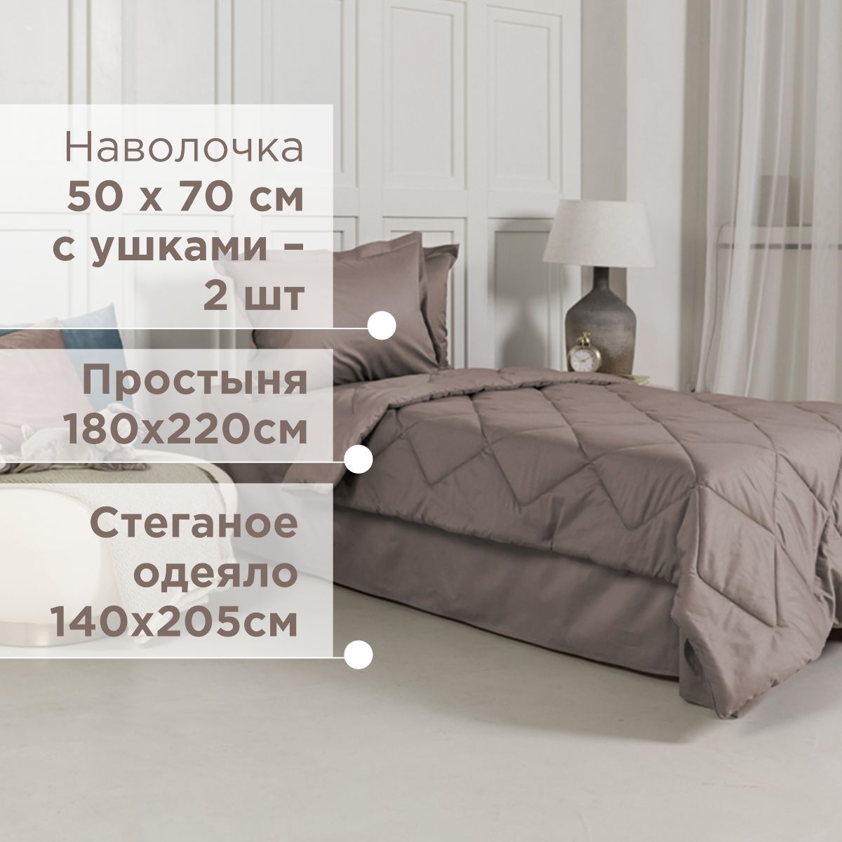 ПОСТЕЛЬНОЕ БЕЛЬЁ САТИН С ОДЕЯЛОМ 2 НАВОЛОЧКИ КОФЕЙНЫЙ