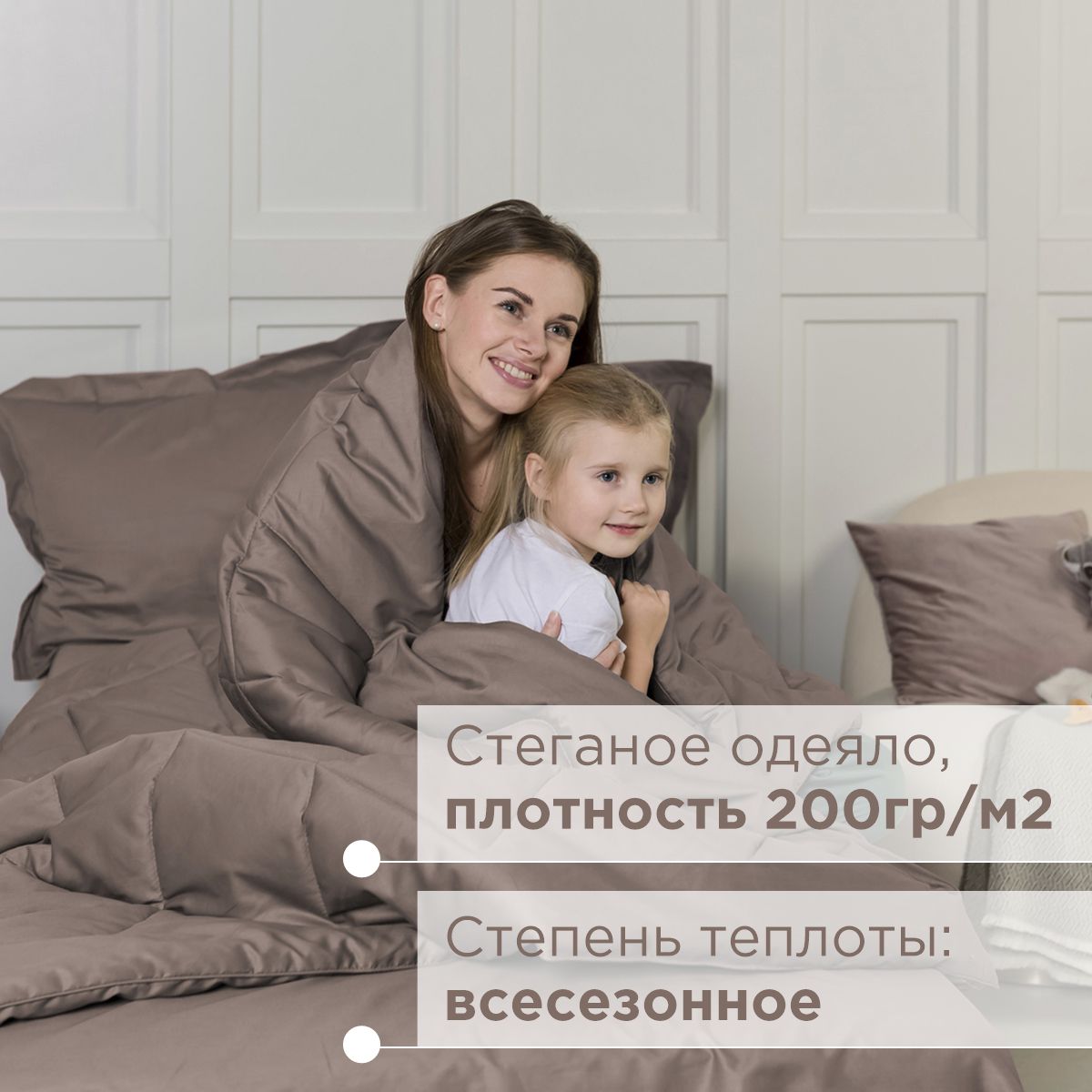 - Стеганое одеяло 140х205см. Одеяло всесезонное, плотность 200гр, что позволяет пользоваться им круглый год. Наполнитель у одеяла: гипоаллергенное 3D микроволокно, не сбивается после стирок.
