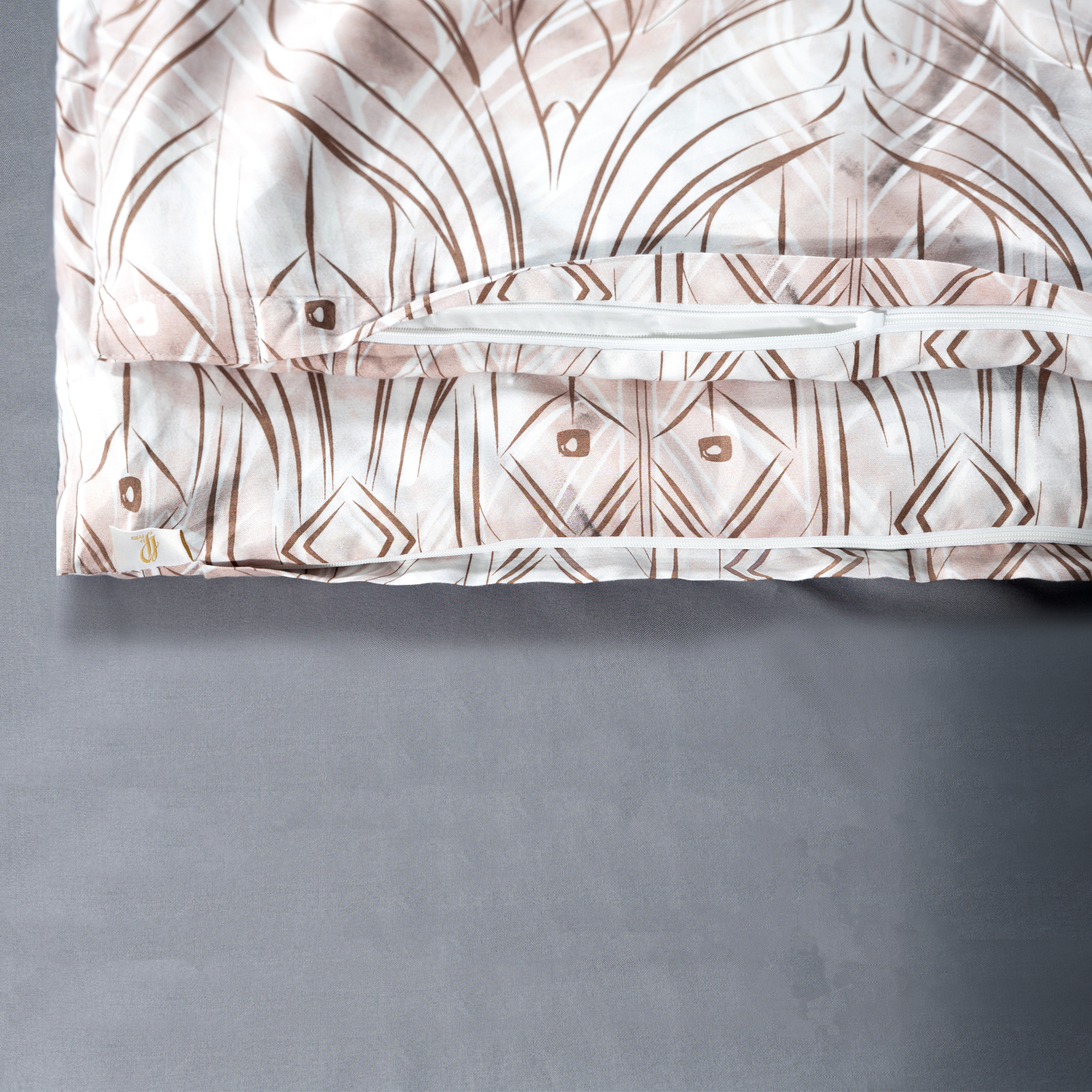 - «Невидимая» молния во всю ширину по нижнему краю пододеяльника. Для быстрой и удобной смены постельного белья в верхней части пододеяльника расположены клапаны для рук. Сменить пододеяльник можно за 30 секунд.
