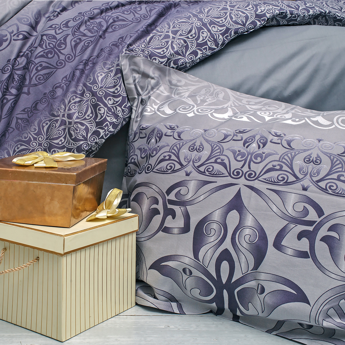 Комплект постельного белья упакован в подарочную коробку. Больше не нужно думать, как красиво оформить подарок.