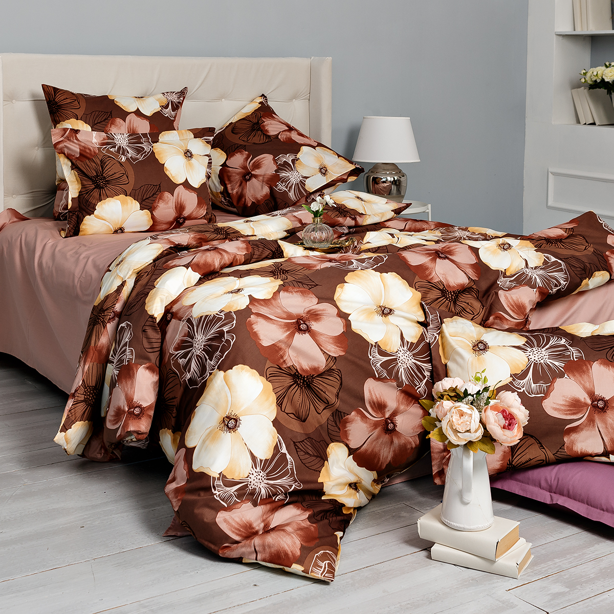 Благородный и глубокий шоколадный оттенок в сочетании с крупным цветочным принтом смотрится по-настоящему изысканно и вызывает самые приятные ассоциации, дарит тепло и чувство комфорта. Восхитительное ощущение гармонии и прекрасного настроения.