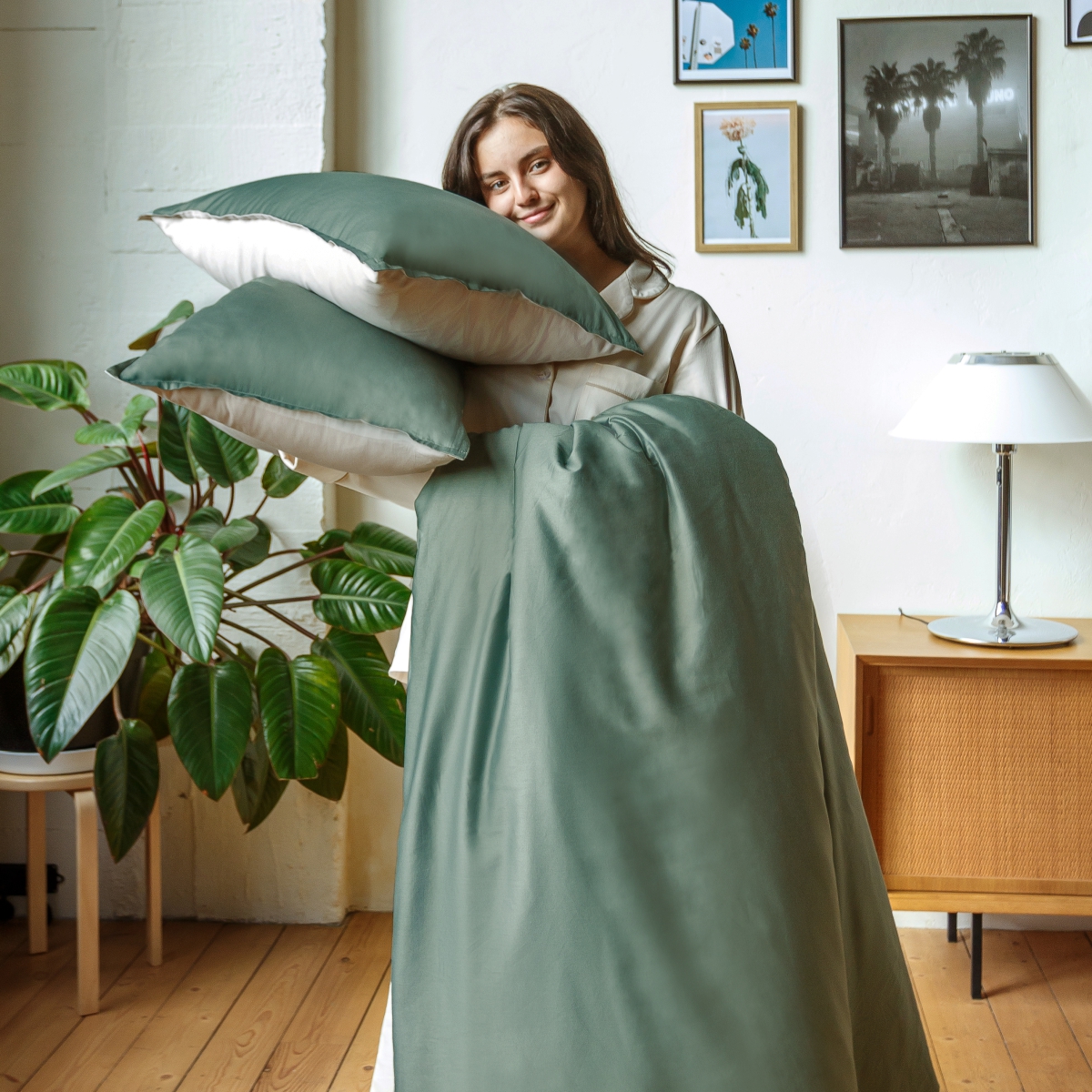 Постельное белье прекрасно пропускает воздух, поддерживает комфортную температуру тела во сне. Безопасно для использования аллергиками - абсолютно гипоаллергенно.