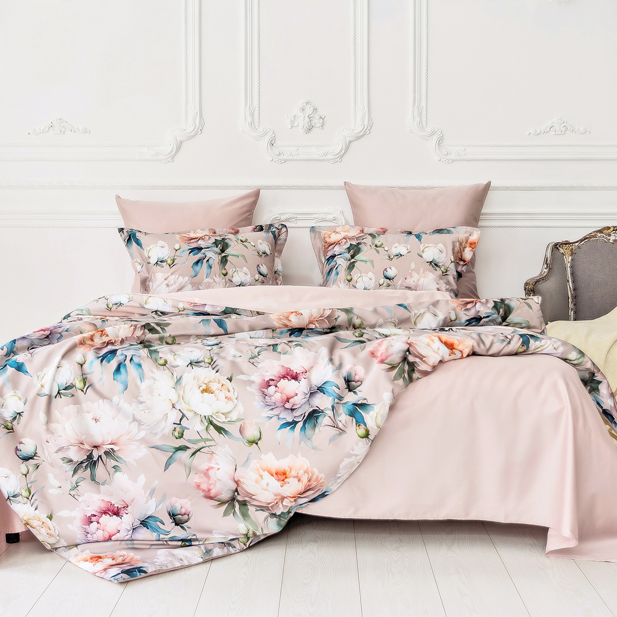 «Аделина» - утонченный цветочный рисунок создаст атмосферу нежности и спокойствия. Мягкие пастельные оттенки, переплетающиеся с акварельными мазками, создают ощущение воздушности и легкости. Яркие и детализированные цветы, выполненные в естественных тонах, как будто сошли с картины. Этот комплект прекрасно подойдет для тех, кто ценит элегантные и романтичные акценты в интерьере.