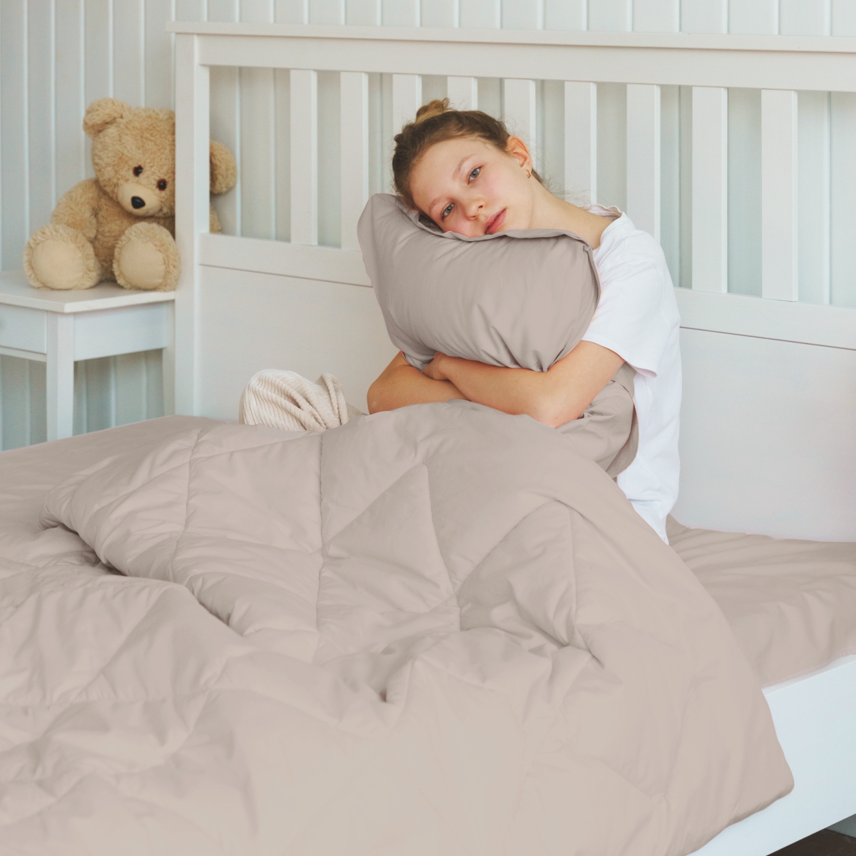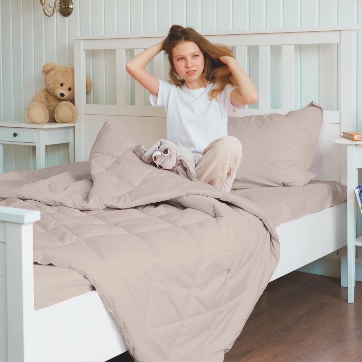 ПОСТЕЛЬНОЕ БЕЛЬЁ САТИН С ОДЕЯЛОМ 2 НАВОЛОЧКИ КАПУЧИНО