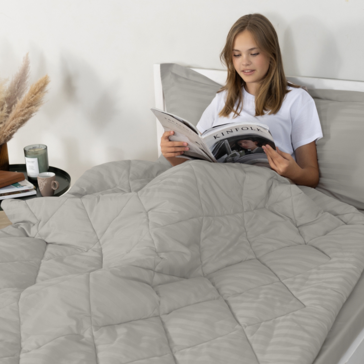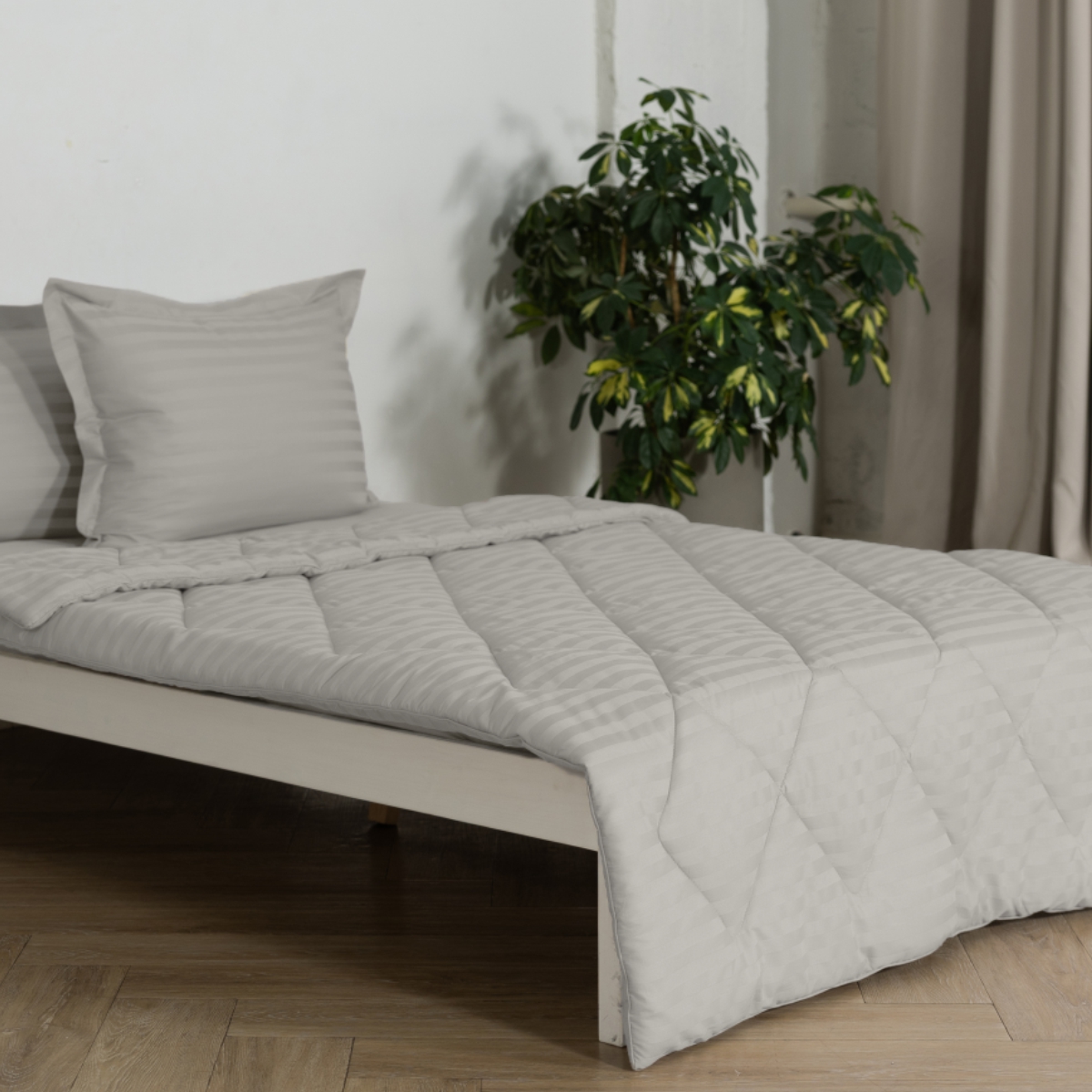 ПОСТЕЛЬНОЕ БЕЛЬЁ СТРАЙП-САТИН С ОДЕЯЛОМ 2 НАВОЛОЧКИ ДЫМЧАТЫЙ