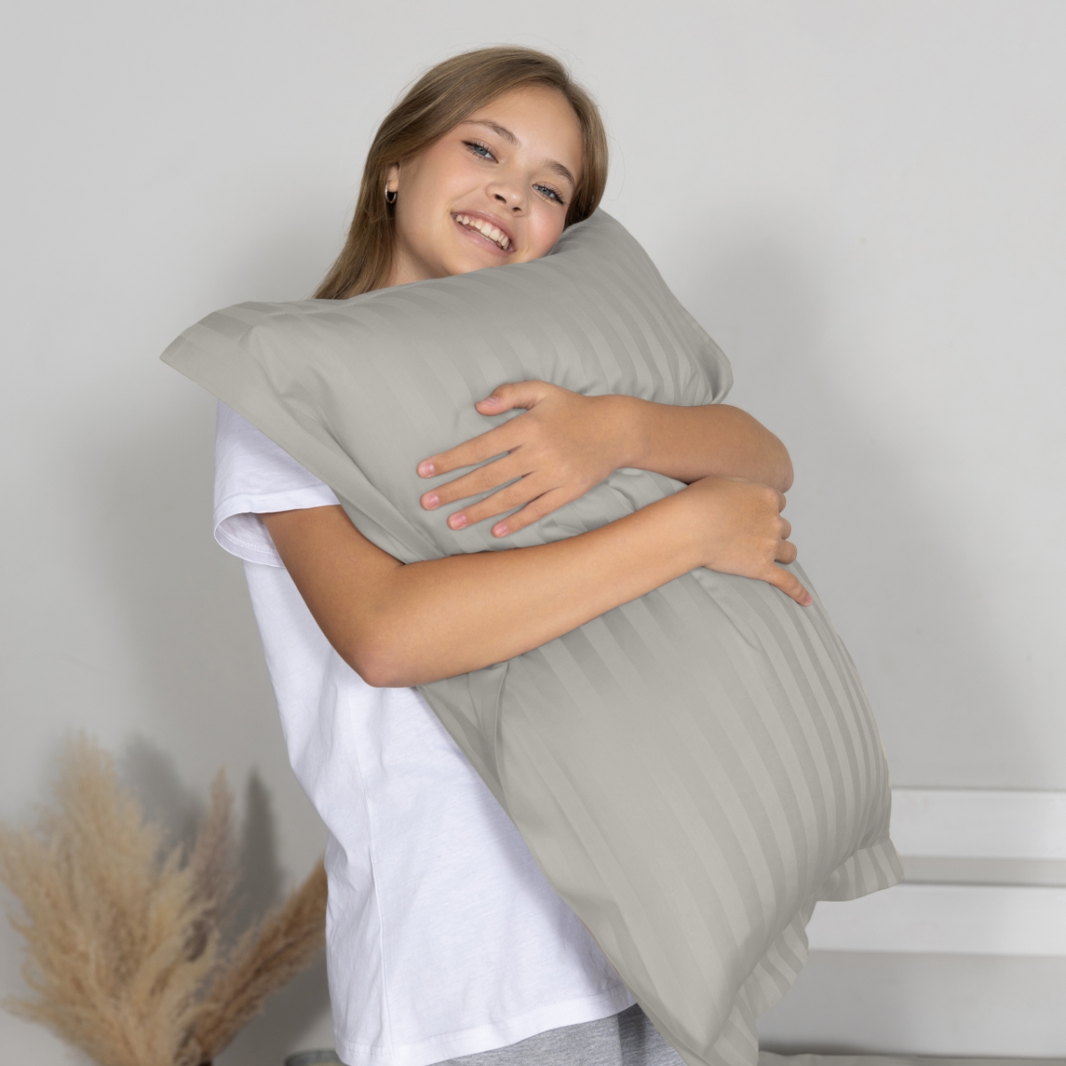 - Наволочки 50х70 см с ушками(из страйп-сатина) – 2 шт. для максимального комфорта и стильного оформления спальни. Клапан для вдевания подушки у наволочки находится по широкой стороне, поэтому сменить её сможет даже ребенок.