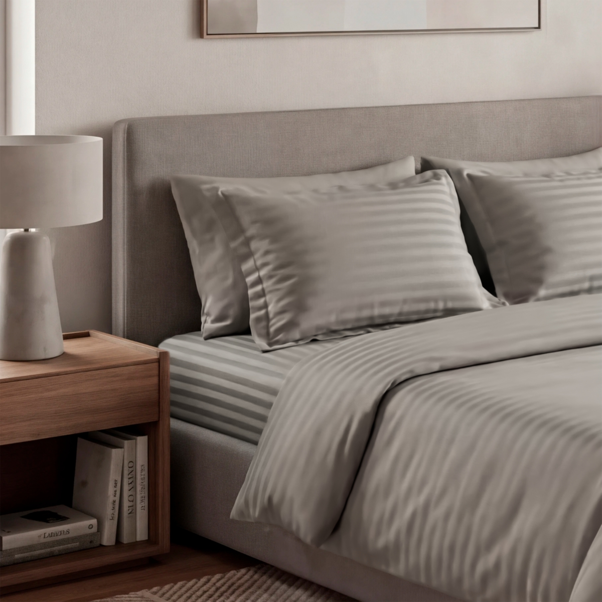 ПОСТЕЛЬНОЕ БЕЛЬЁ СТРАЙП-САТИН ДЫМЧАТЫЙ