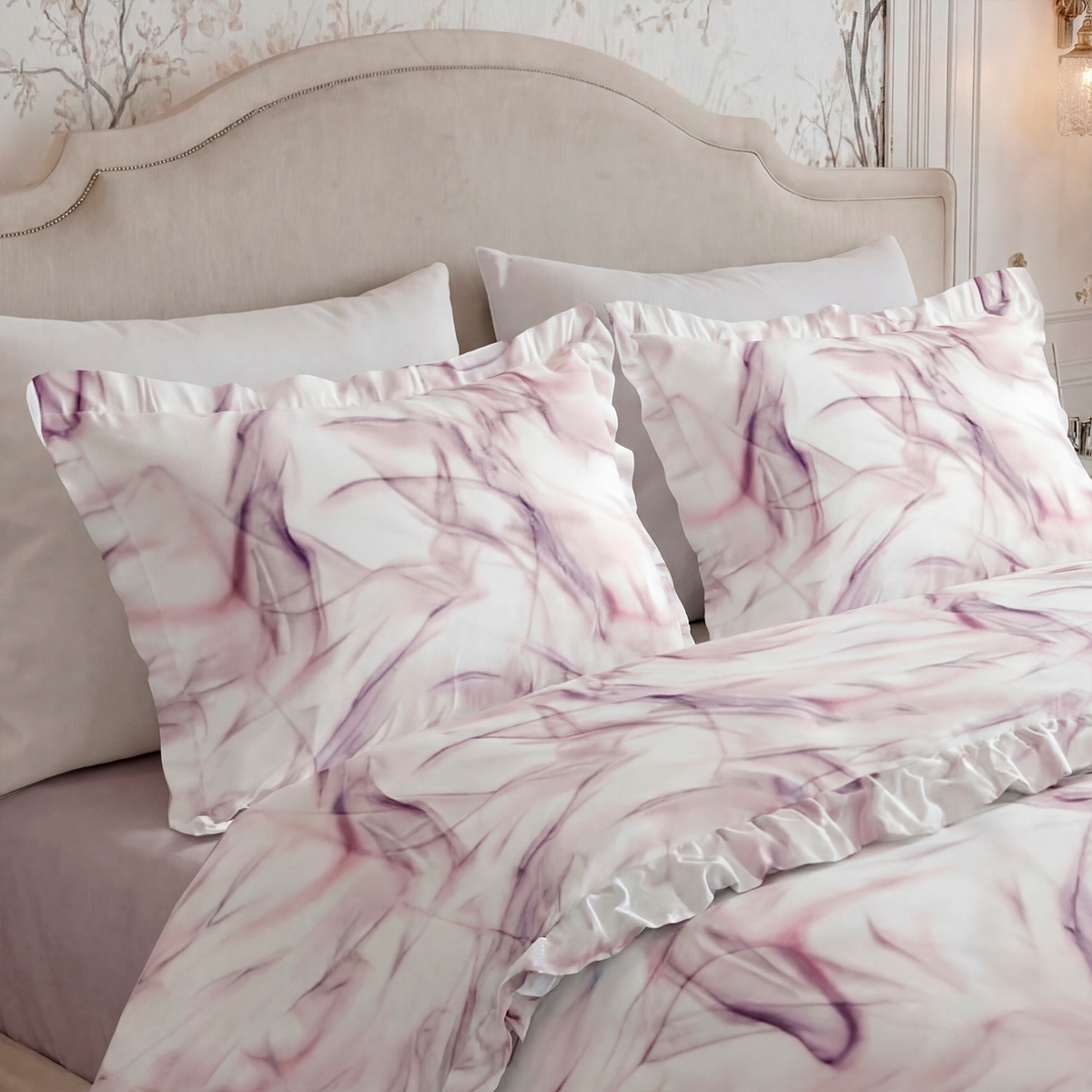 Постельное бельё Cатин | ПОСТЕЛЬНОЕ БЕЛЬЕ САТИН С РЮШАМИ «СЕЛЕСТА»