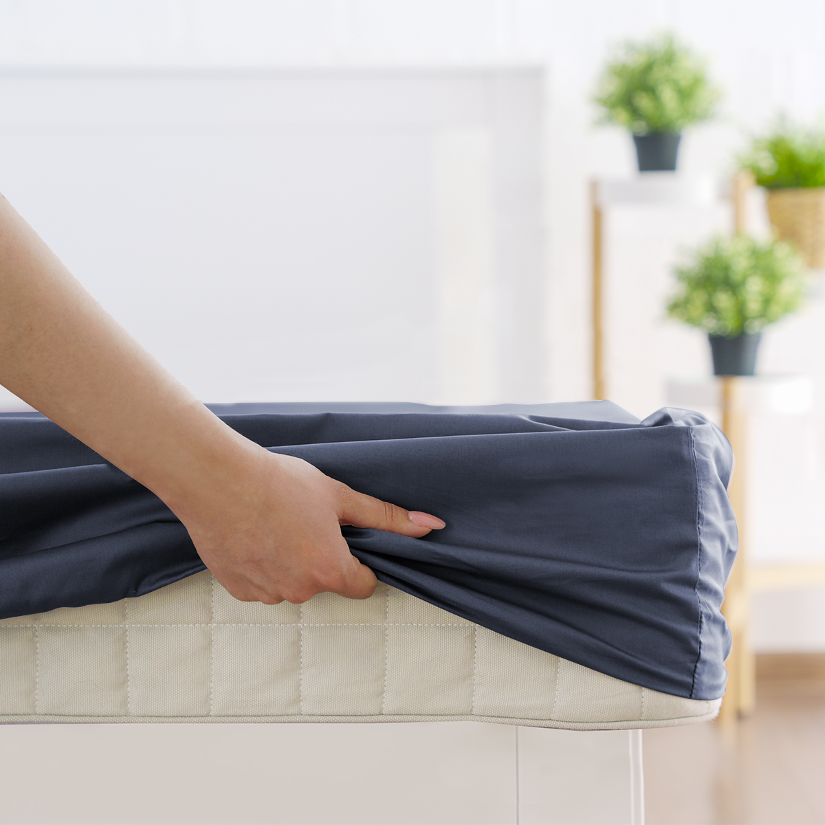 Однотонная стильная простыня на резинке (натяжная) произведена из ткани сатин – 100% хлопок.  Благодаря сатиновому плетению двойной крученой нити хлопка, сатин – очень приятная, мягкая, но в то же время прочная ткань. Пропускает воздух, поддерживает комфортную температуру тела, когда вы спите.