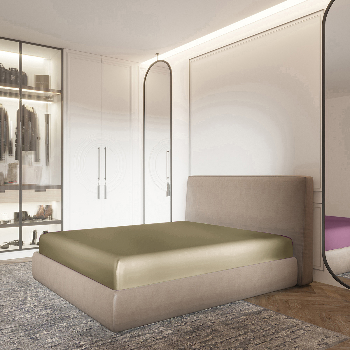 Для вашего интерьера: благородный блеск и трендовые оттенки превращают спальню в приватный бутик-отель, где каждая деталь говорит о безупречном вкусе.