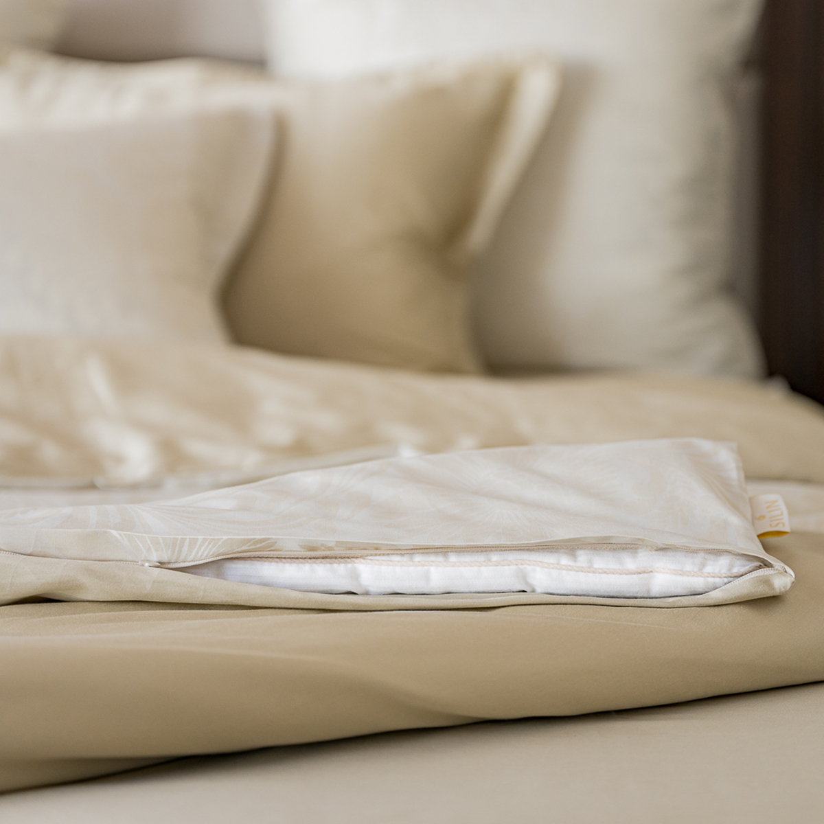 • Лицевая сторона наволочек и пододеяльника выполнена из жаккардовой ткани, оборотная из премиального длинноволокнистого хлопка сорта Пима