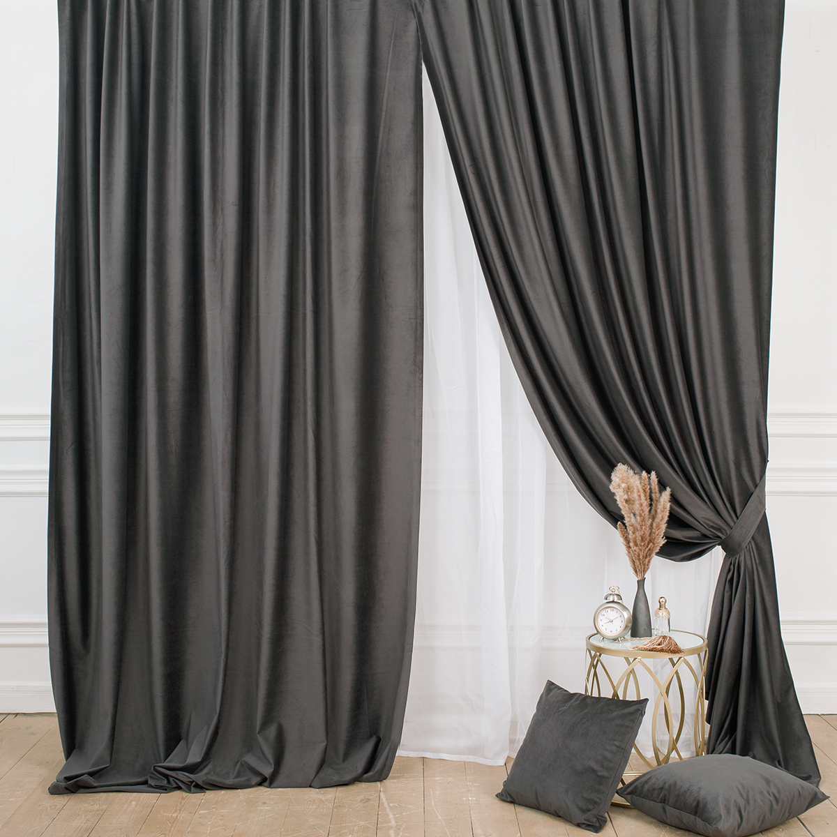 Состав: бархат 100% пэ. Портьеры отлично держит форму, не дают усадку и не мнутся.