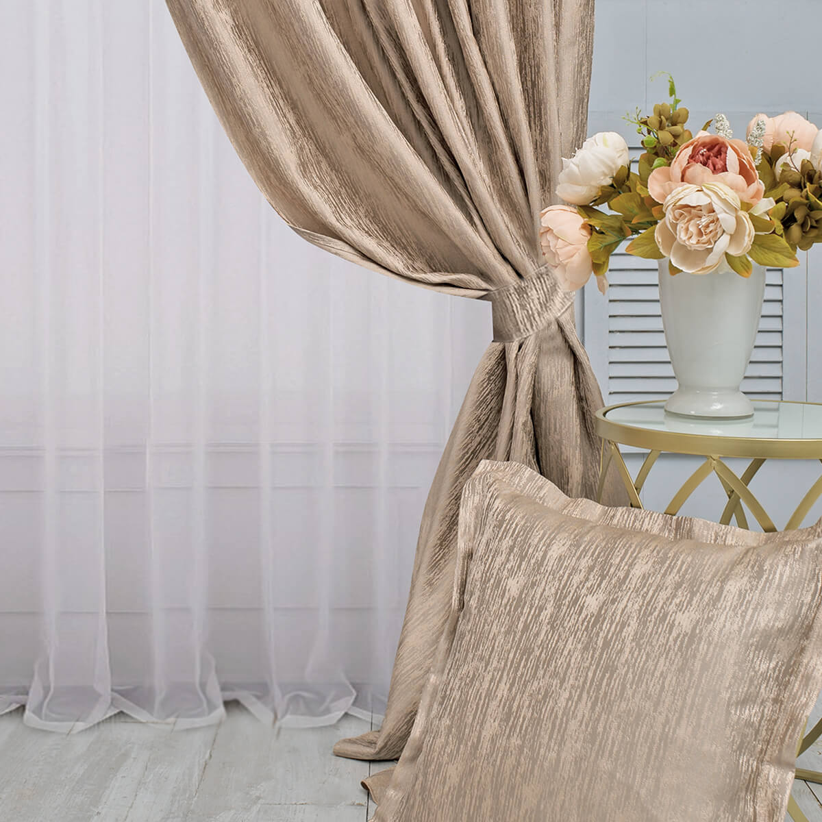 Шторы представлены в 2 цветах: бежево-розовом и жемчужно-розовом.