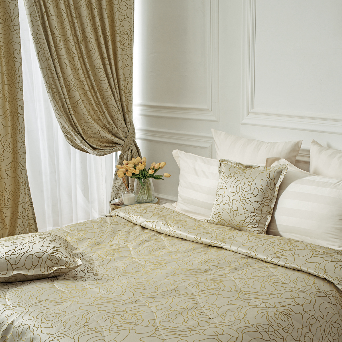 Селеста - базовая коллекция. Замысловатые линии, изящно переплетающиеся в оригинальный узор, элегантный сдержанный блеск жаккардовой ткани, сочные и одновременно универсальные оттенки делают эту коллекцию настоящим украшением любой спальни.