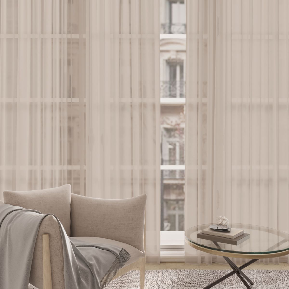 Легкая невесомая структура полотна соткана в виде сетки, фактура очень легкая, при этом есть возможность ощутить глубину цвета, придав интерьеру стильную завершенность.